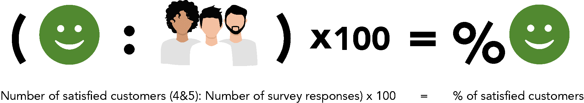 Die untenstehende Gleichung gibt Ihnen ein besseres Verständnis für den Prozentsatz der insgesamt zufriedenen Kunden. Liegt Ihre Gesamtbewertung bei 4 oder 5, korreliert das mit einer entsprechend höheren Kundenbindungsrate.