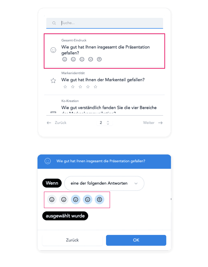 z.B. die Frage "Wie gut hat Ihnen insgesamt die Präsentation gefallen?"